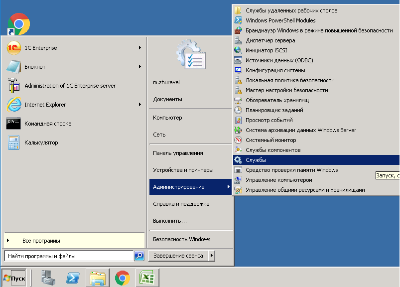 1. Зупинити службу 1C:Enterprise 8.2 (8.3) Server Agent. Зайдіть в меню Пуск – Адміністрація – Служби.